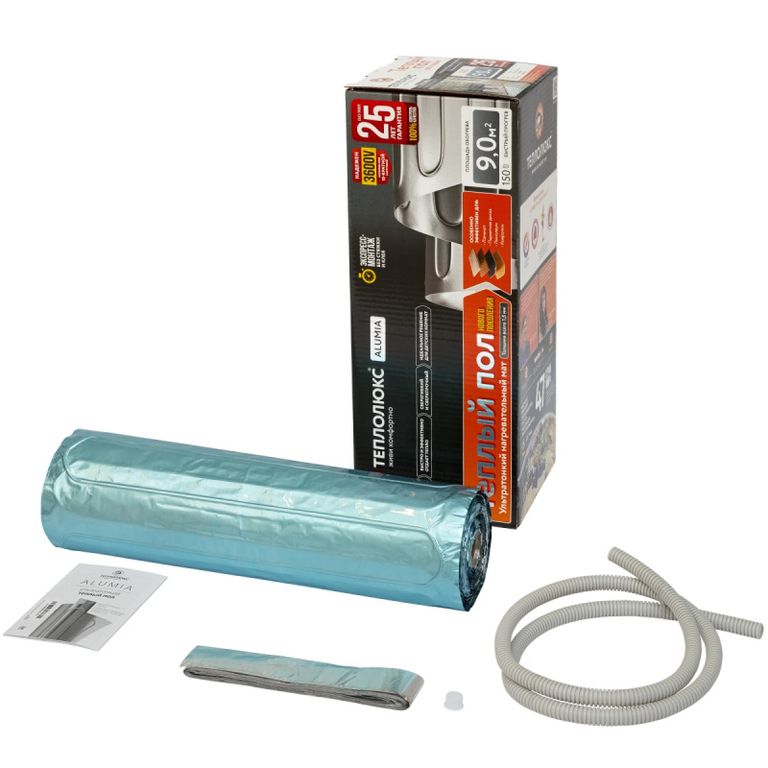 Теплолюкс Alumia - это система электрического теплого пола на основе двухжильного греющего кабеля, расположенного между двумя склеенными слоями фольги. Предназначен для установки непосредственно под напольное покрытие без заливки строительными смесями.