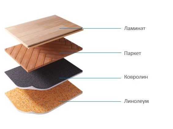 Напольные покрытия: ламинат, паркетная доска, линолеум, ковролин.