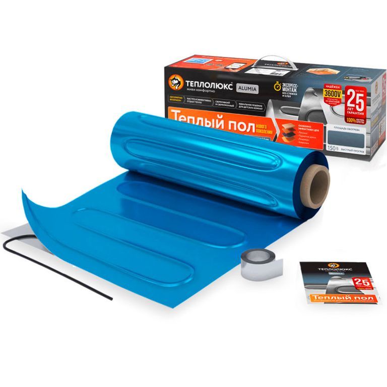 Теплолюкс Alumia - это система электрического теплого пола на основе двухжильного греющего кабеля, расположенного между двумя склеенными слоями фольги. Предназначен для установки непосредственно под напольное покрытие без заливки строительными смесями.